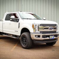 1.5 inch lift for Ford super duty 2017 and newer Basic Radius Arm Drop Level Kit, Comparable to most of the other level kits on the market. This system has an improved track rod location at the frame, it is better than the competitors track rod brackets. Not as good as our OUO Steady Axis geometry, but for people on a tight budget this will not be a downgrade to your truck. This will function much better long term then Teflon lined rod ends in a aftermarket track rod or track rod brackets completely in the wrong location. This is not an OUO Steady Axis or an OUO Steady Track. This will have comparable bump steer to a stock truck. It is mandatory to run the 1.5″ bump stop drops with this track rod bracket no matter how much lift you set the levelers at. If you raise this level kit past an 1.5″ in lift it will start to pull your front axle to the driver side. Includes radius arm drops to achieve a better arm angle and increase castor replaces your track rod bracket keeps your factory track rod includes adjustability of front ride height keeps factory length shocks.
